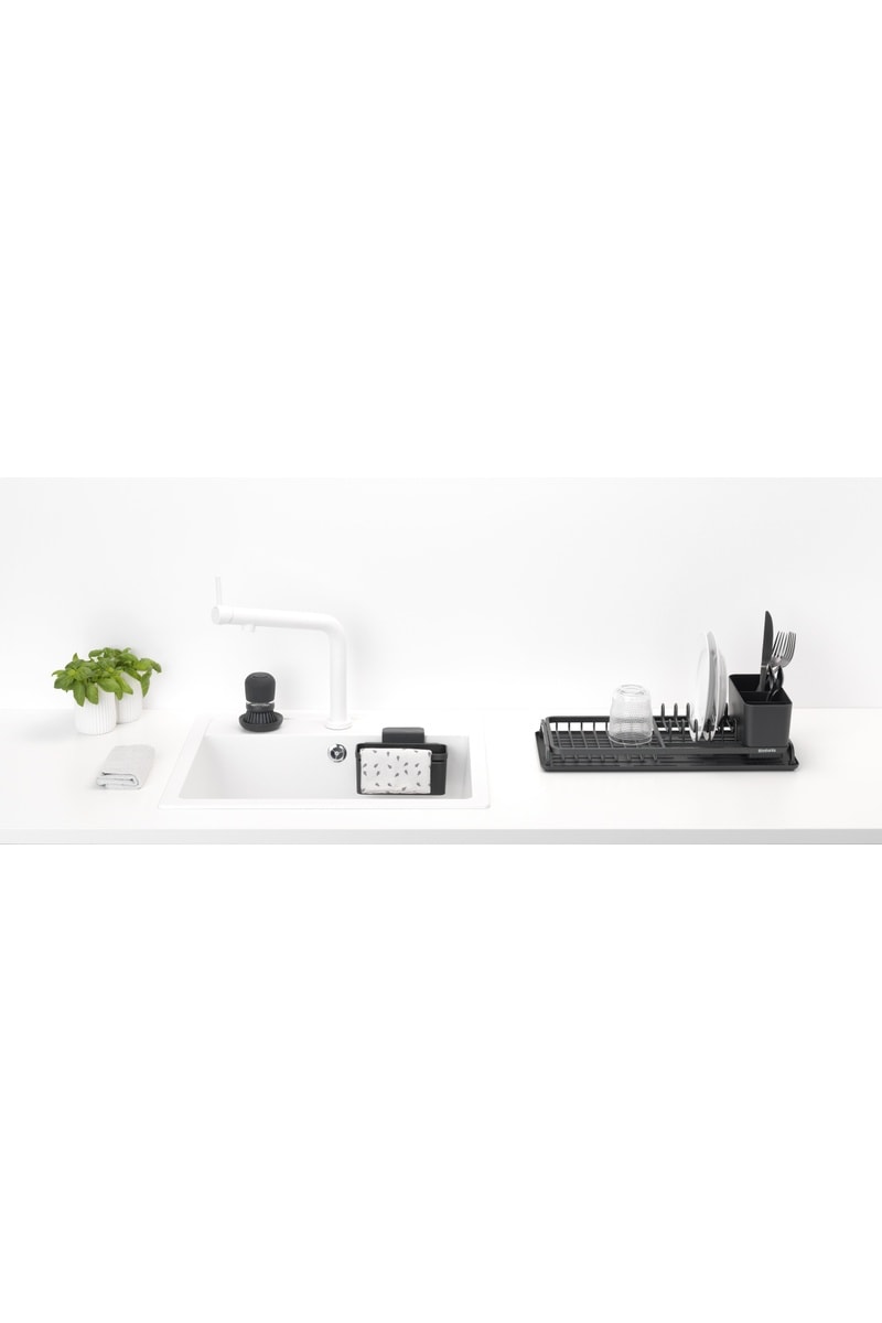 2 panni in microfibra e spazzola per piatti con dispenser di detersivo inclusi.