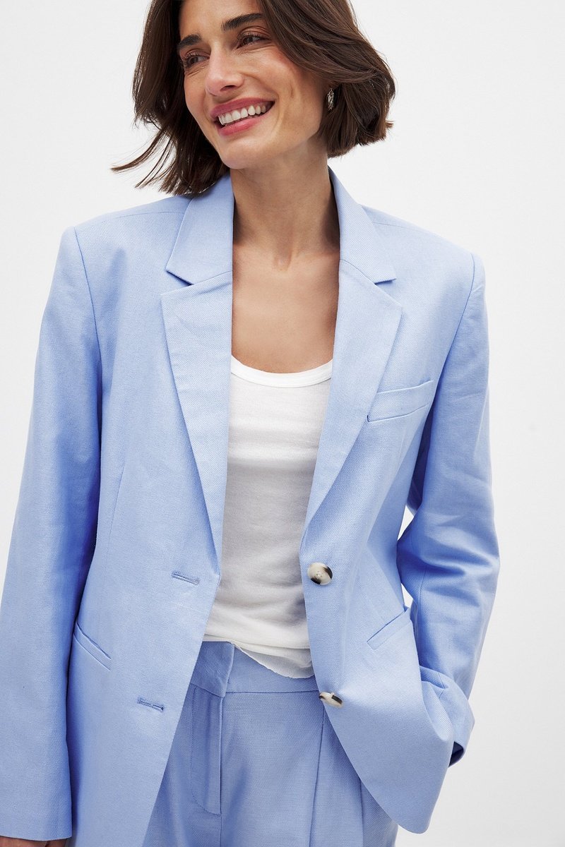 Blazer regular in lino - Azzurro