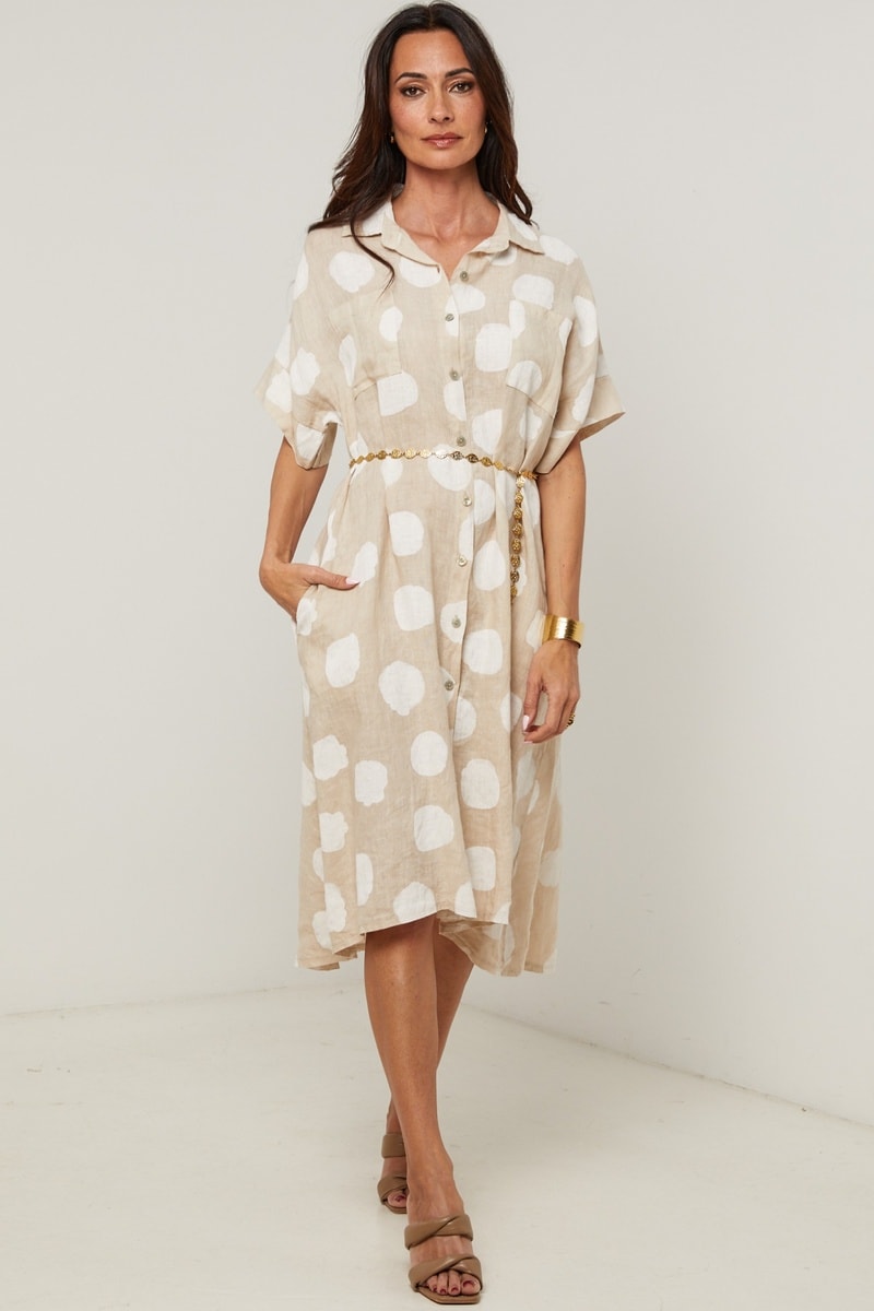 Abito a camicia in lino - Beige
