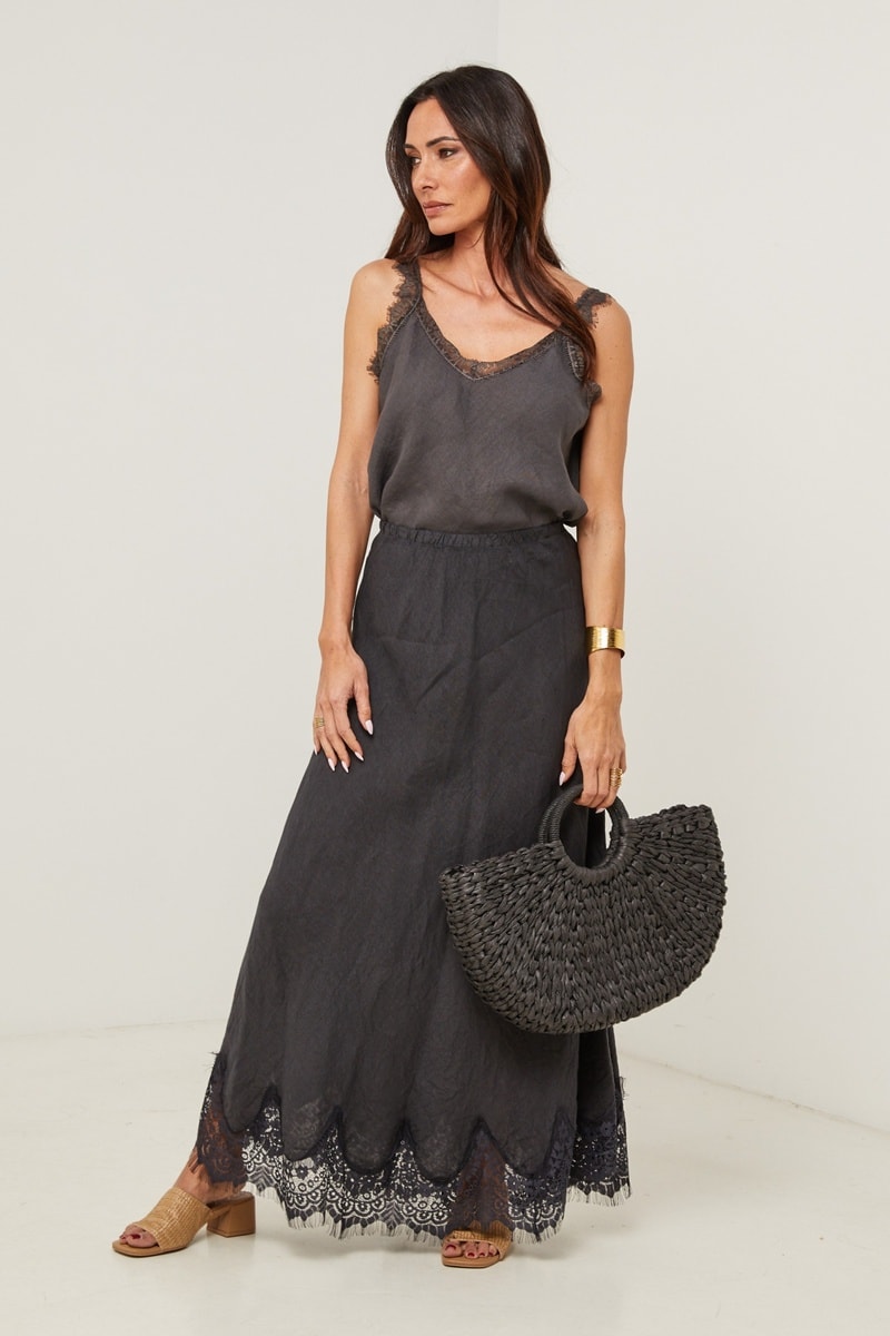 Gonna lunga in lino - Nero