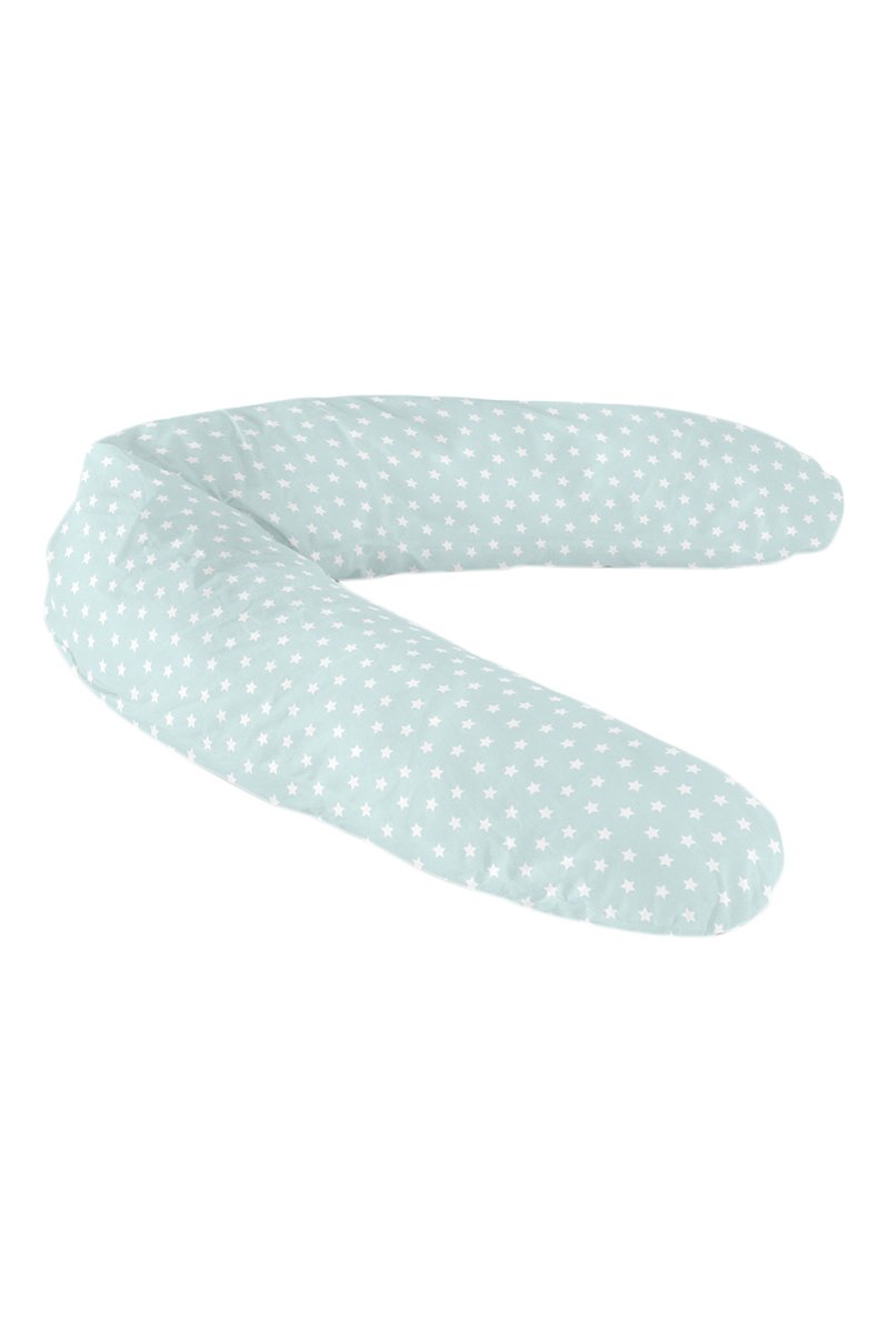 Cuscino per l'allattamento. Forma ergonomica. Sostiene la zona lombare per una posizione di allattamento ottimale. Allevia le tensioni su spalle, schiena e pancia. Può essere utilizzato come culla sotto supervisione. Si può utilizzare anche per dormire durante la gravidanza. Motivi a stelle. Marca Naf Naf.