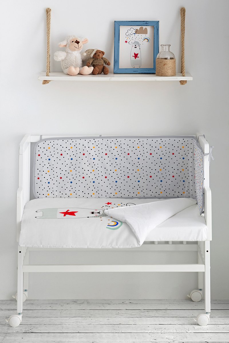 Culla fianco letto e biancheria da letto Nordic Bear - Bianco - 4 pezzi - Bianco