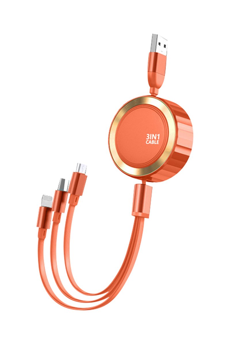 Cavo di ricarica retrattile 1.2m 3 in 1 3A - Micro USB / Lightning / Tipo-C - Arancione