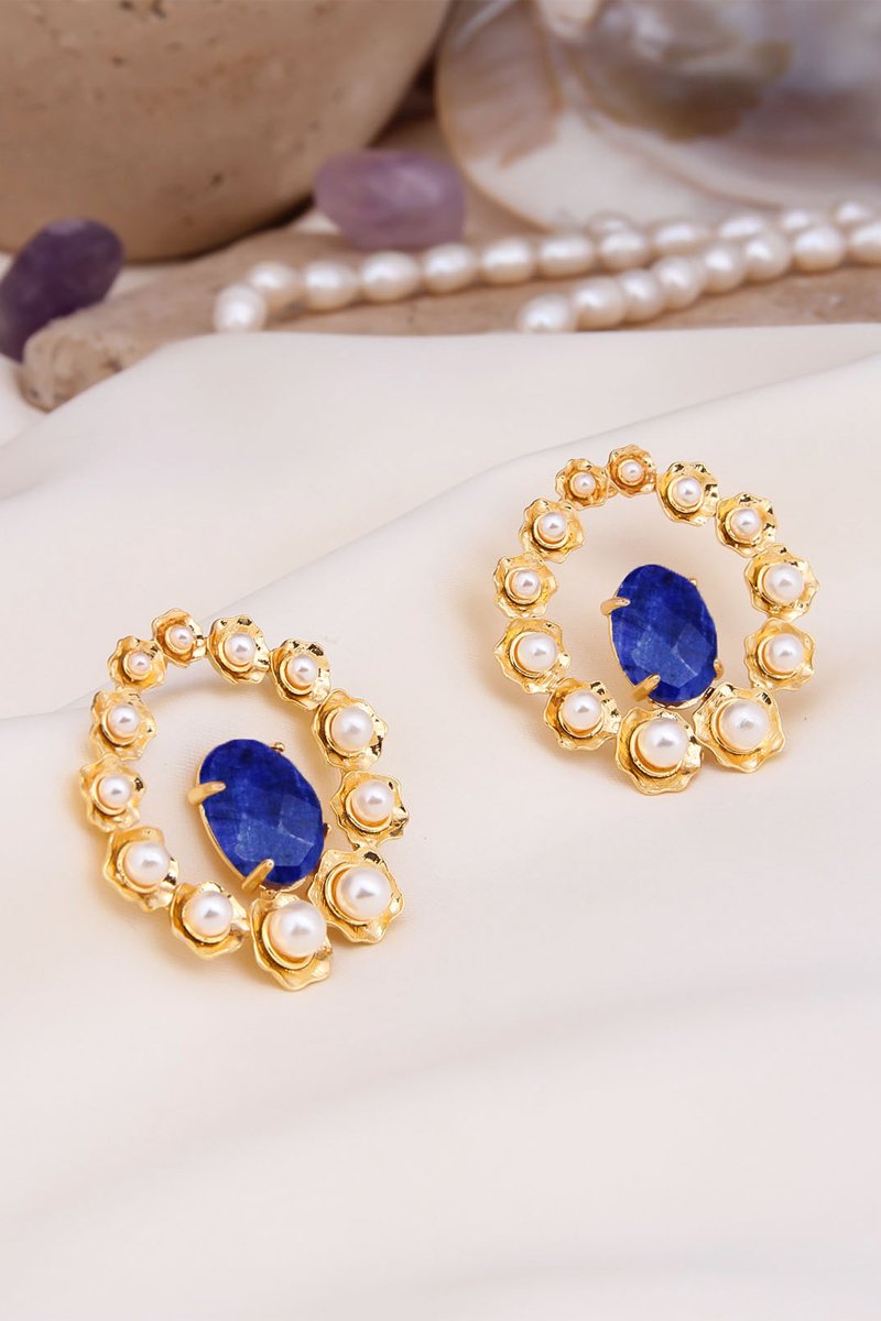 Orecchini con uno zaffiro e perle di imitazione.