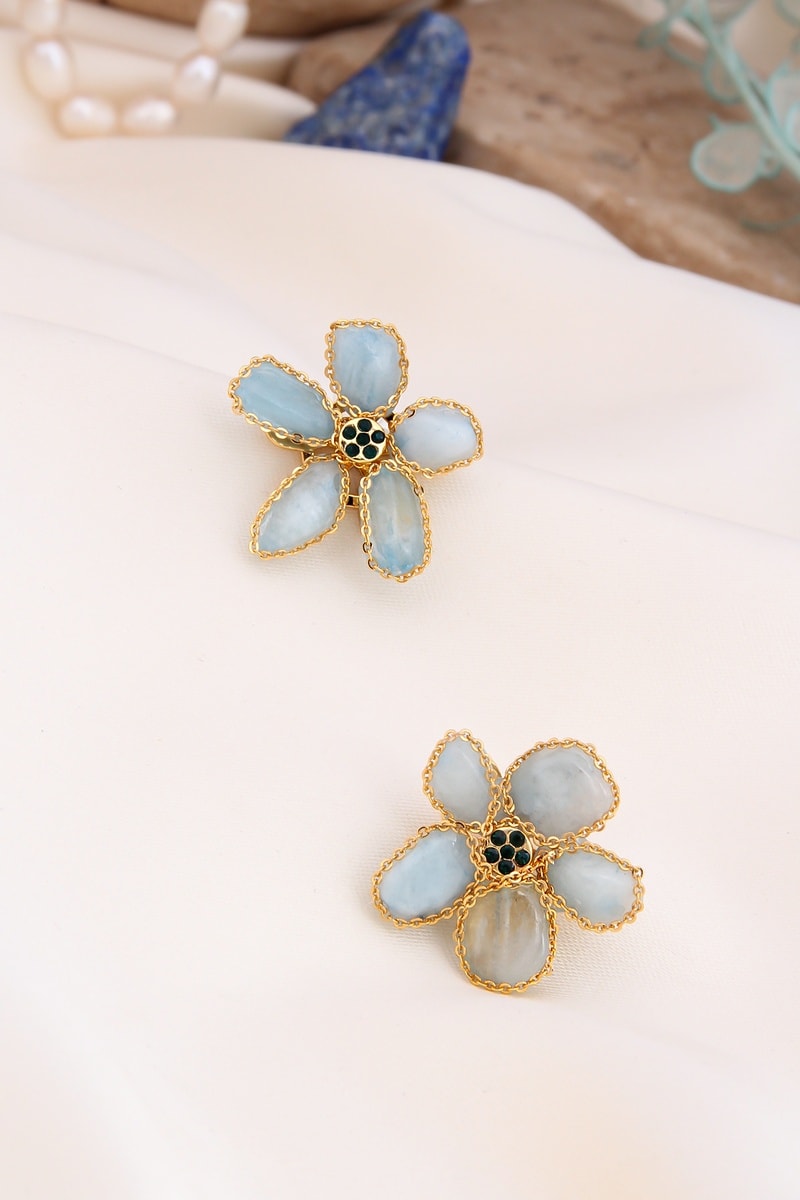 Orecchini con 5 amazzoniti e 5 zirconi.