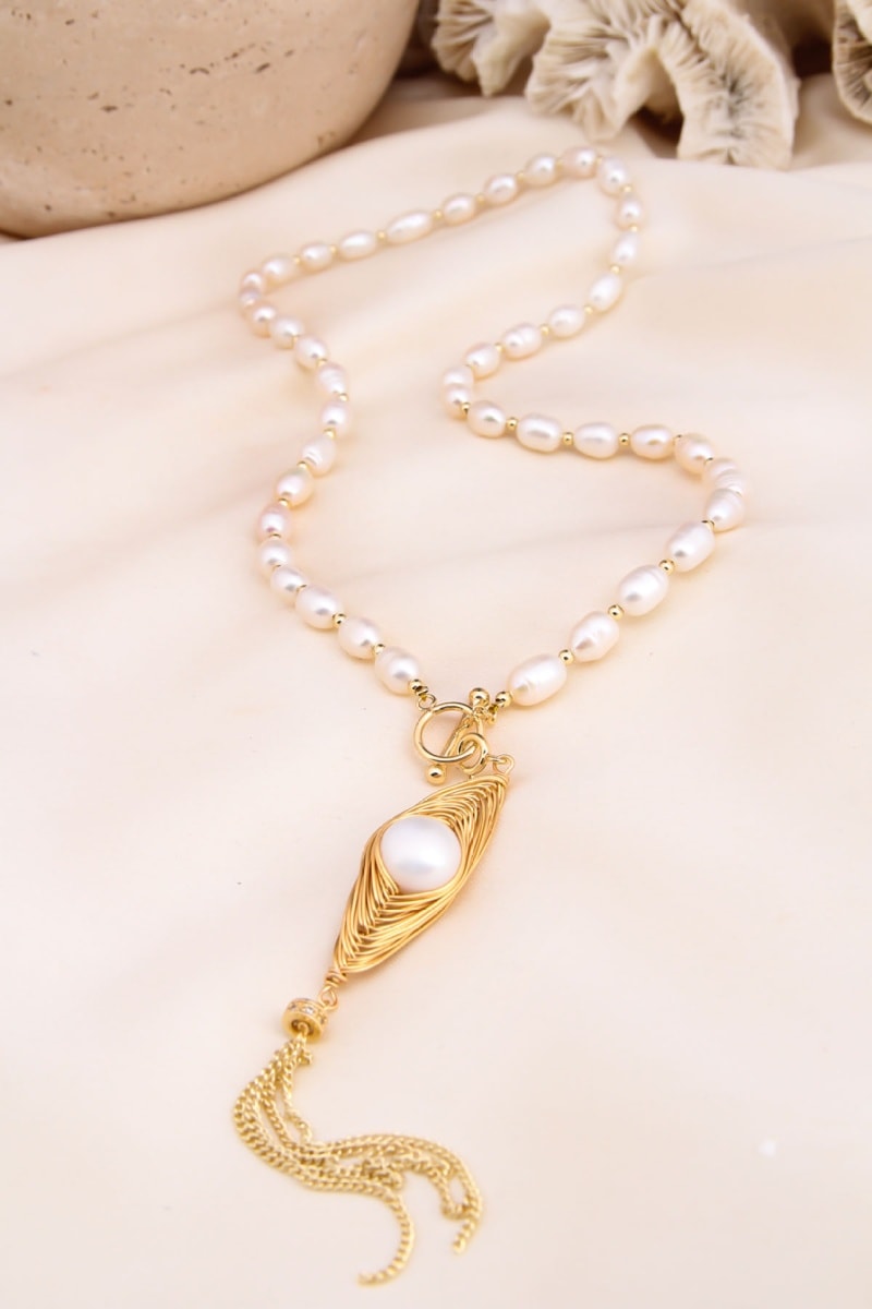 Collana con perle di imitazione.
