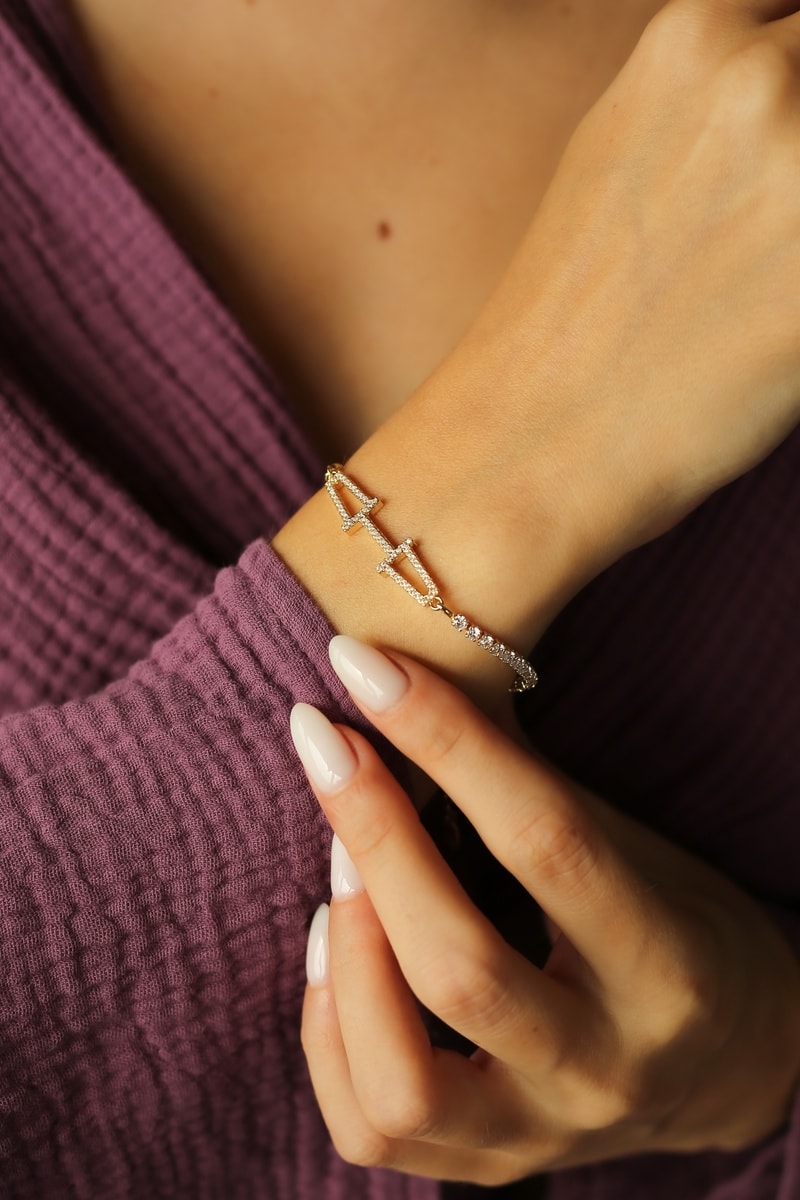 Bracciale placcato oro giallo con zirconi.