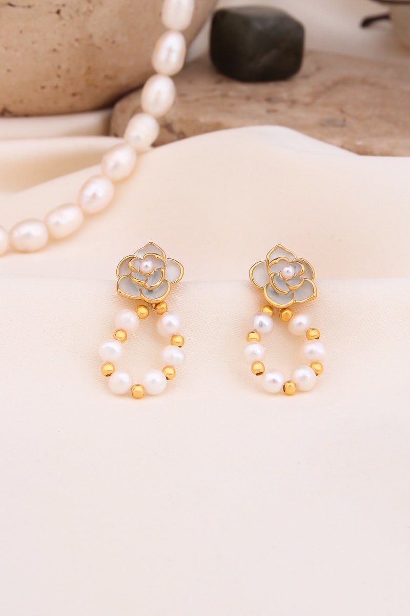 Orecchini pendenti con 14 perle di imitazione e cristalli.