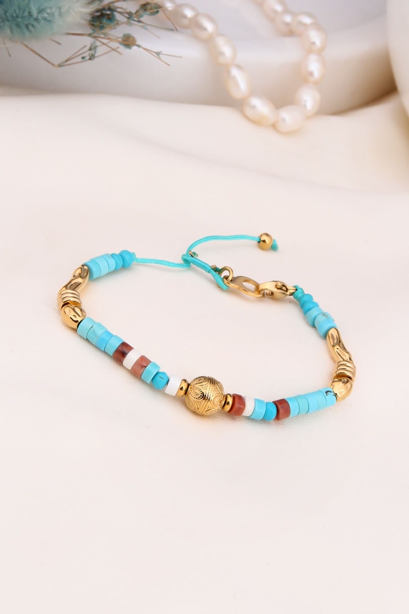 Bracciale - Placcato oro giallo, turchesi e diaspri