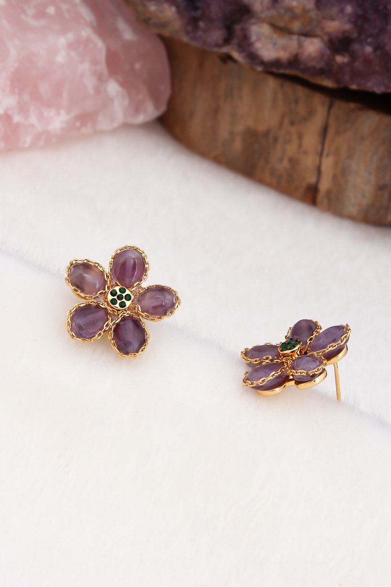 Orecchini con 5 ametiste e 5 cristalli.
