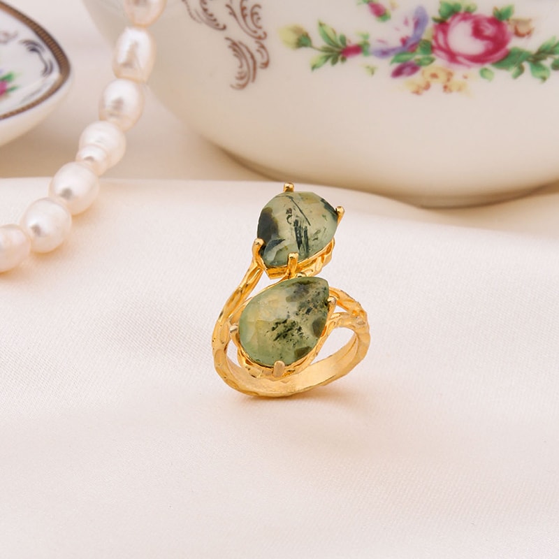 Anello regolabile - Ottone placcato oro e prehnite