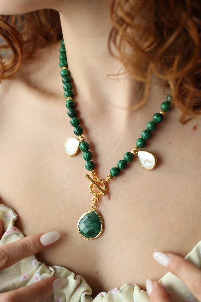 Collana laminato oro giallo con pietre naturali.