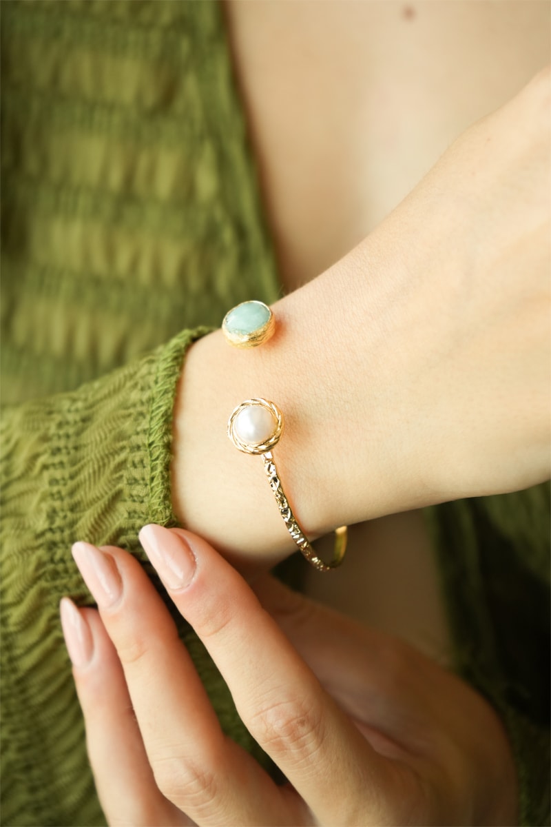 Bracciale bangle aperto con amazzoniti.