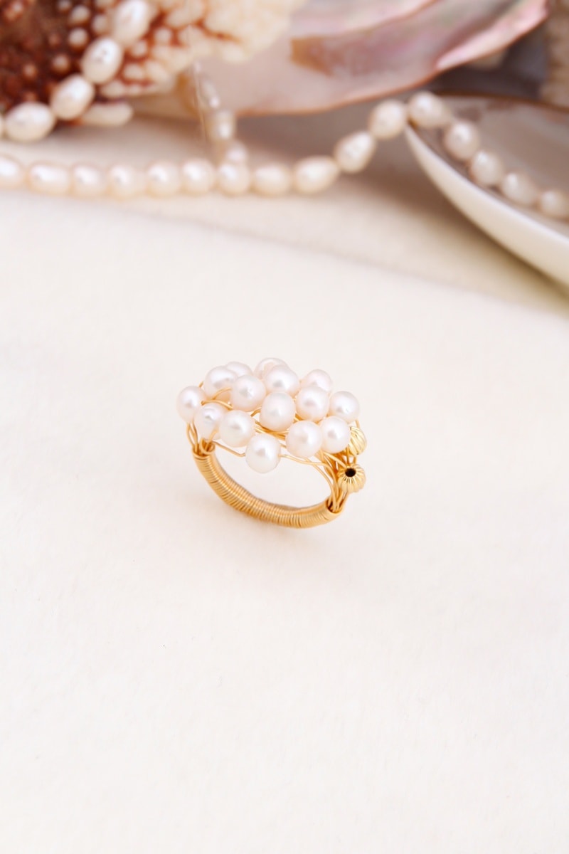 Anello regolabile placcato oro giallo con perle di imitazione.
