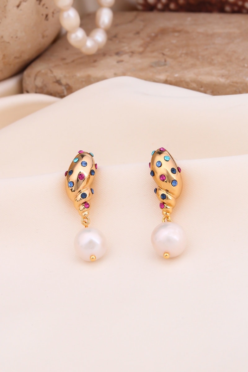 Orecchini con zirconi e una perla di imitazione.