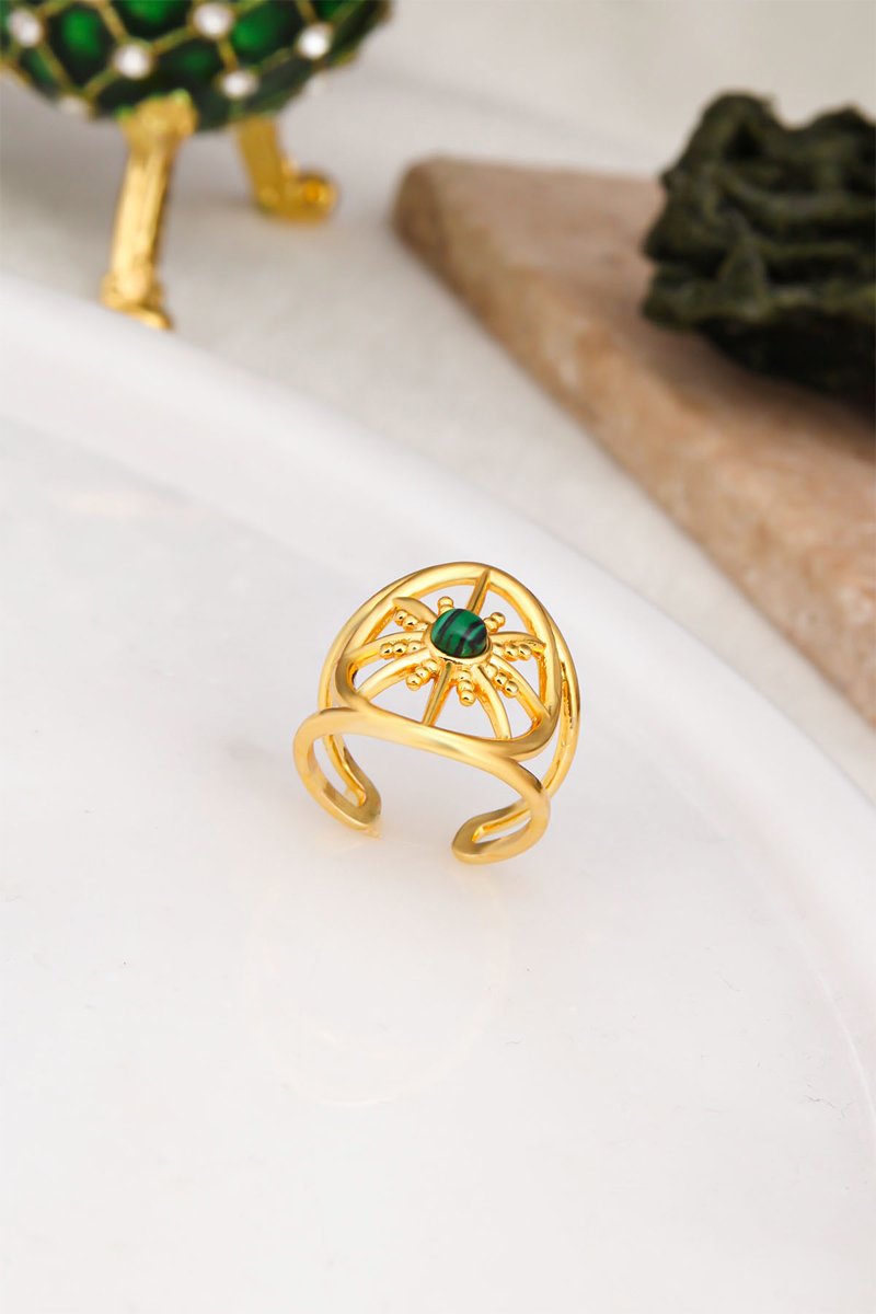 Anello regolabile con una malachite.