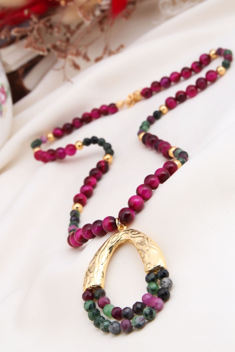 Collana - Placcato oro giallo e occhi di tigre