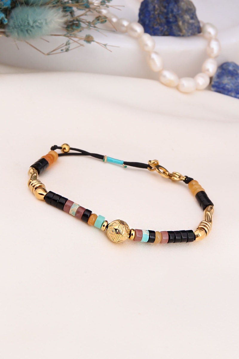 Bracciale placcato oro giallo con onice e agate.