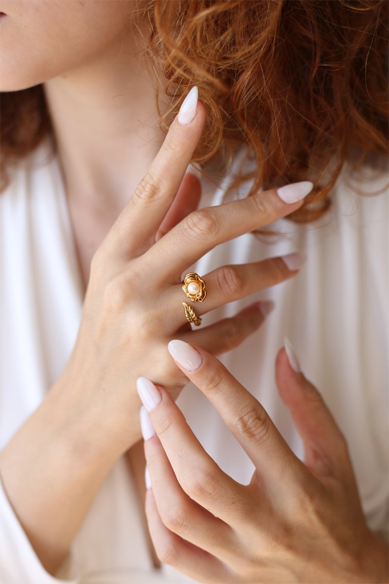 Anello regolabile con una perla coltivata.