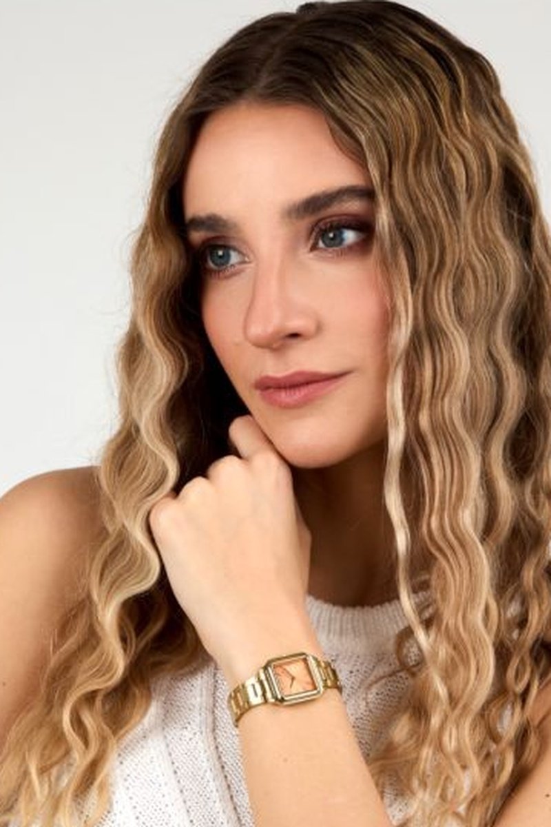 Orologio al quarzo in acciaio - Dorato e arancione