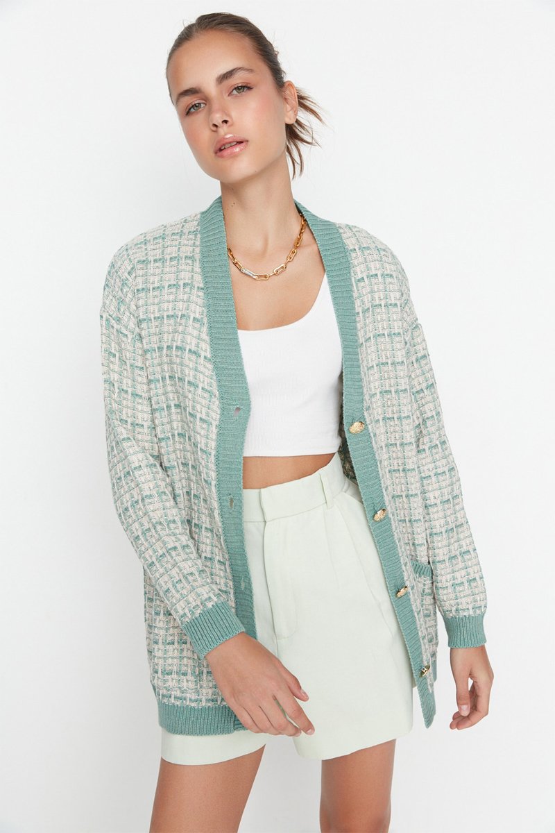 Cardigan a quadri - Verde acqua