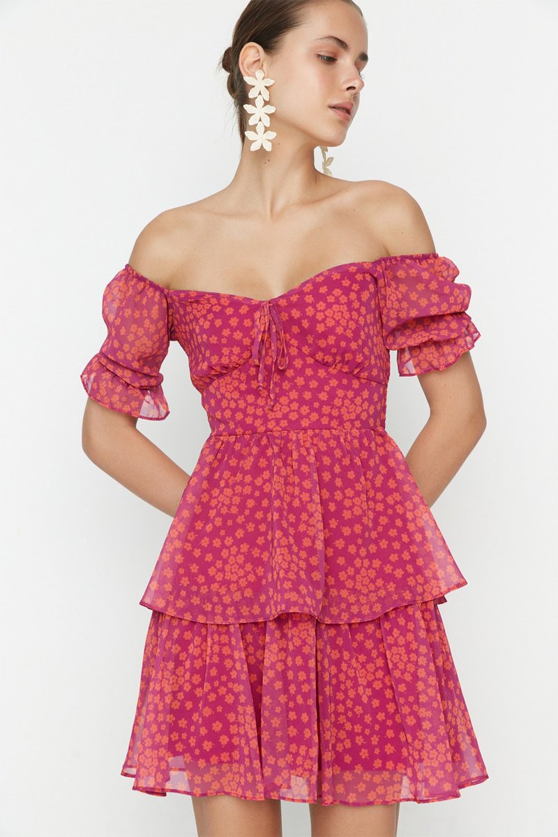 Abito con volant - Fucsia