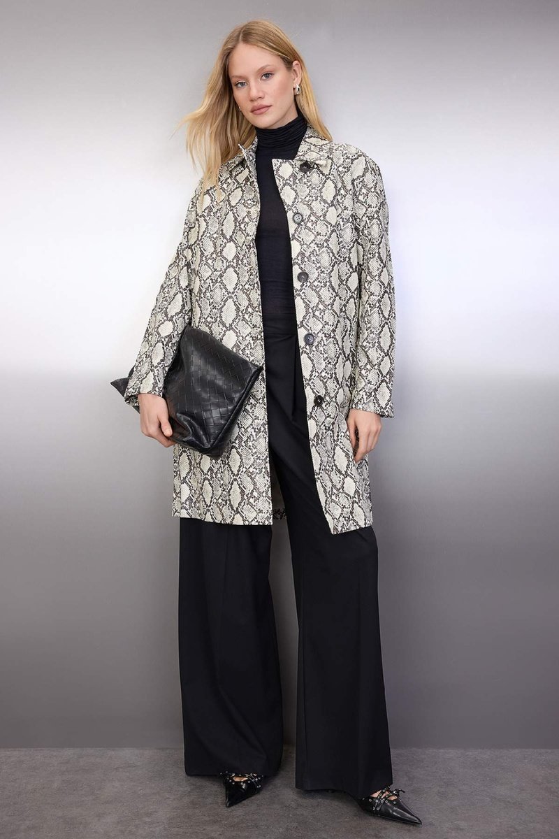 Trench effetto pelle a maniche lunghe.