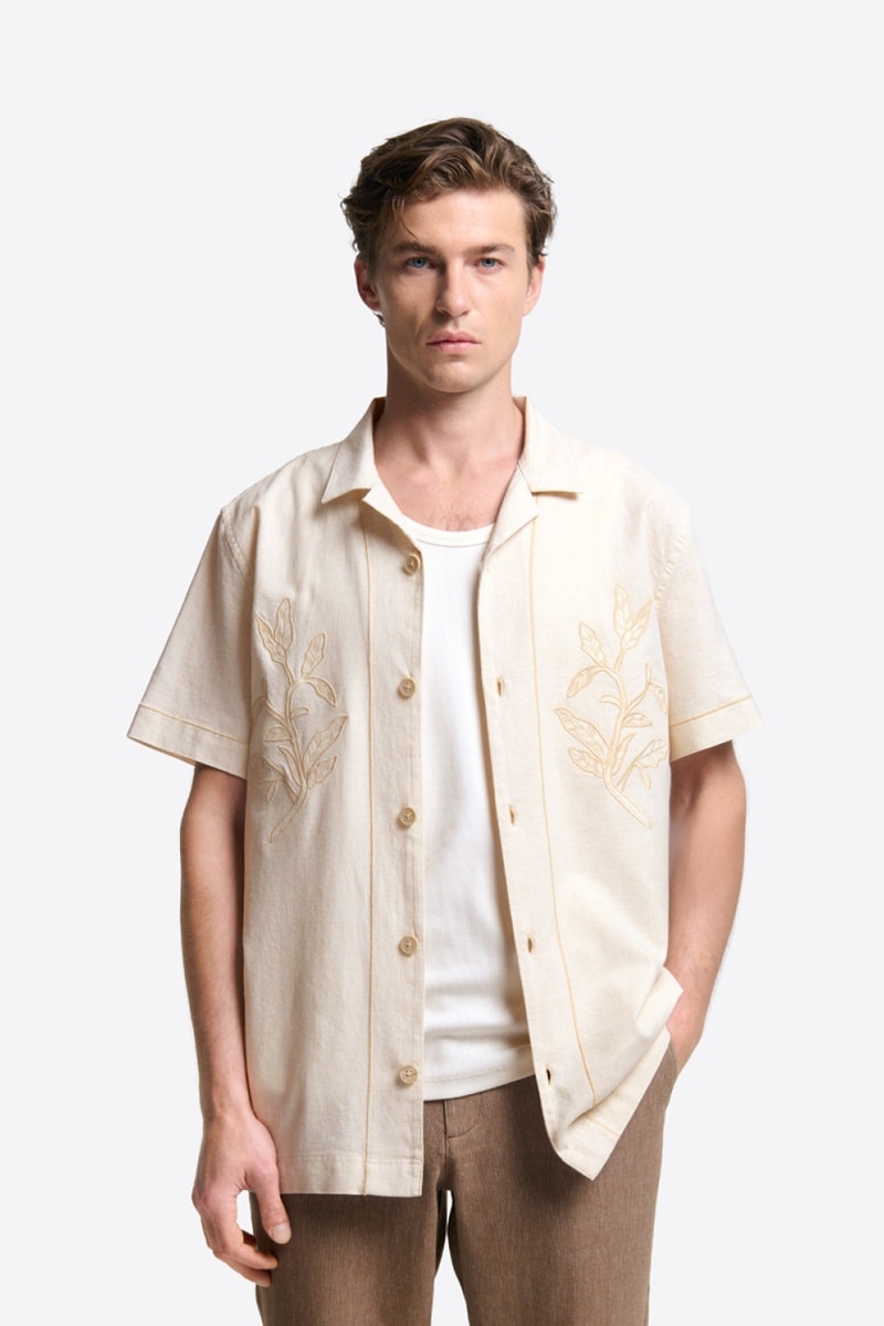 Camicia regular in misto lino.