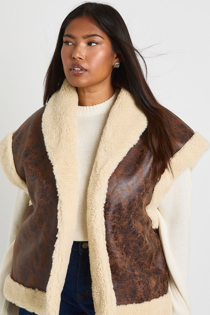 Giacca senza maniche - Marrone scuro ed ecrù
