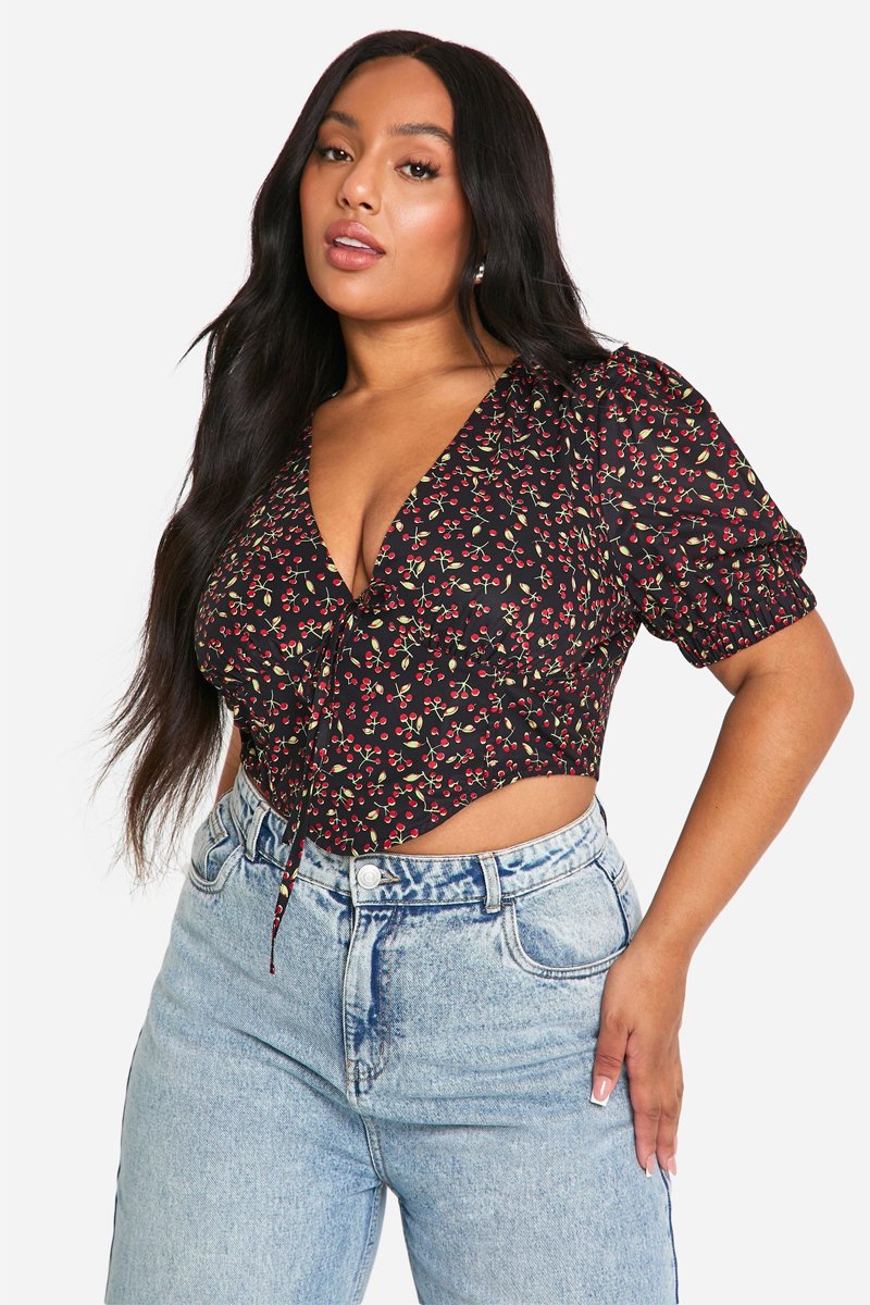 Crop top a maniche corte a sbuffo.