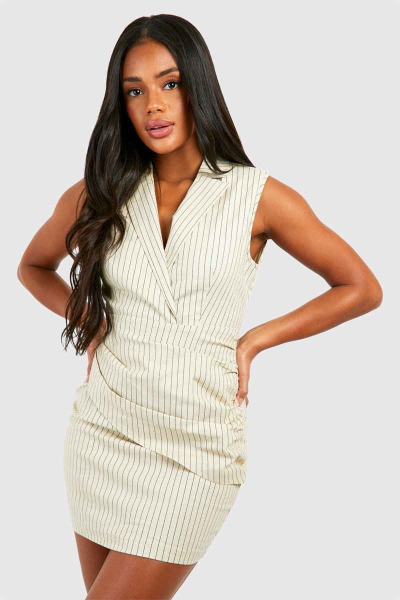 Abito drappeggiato in misto lino.