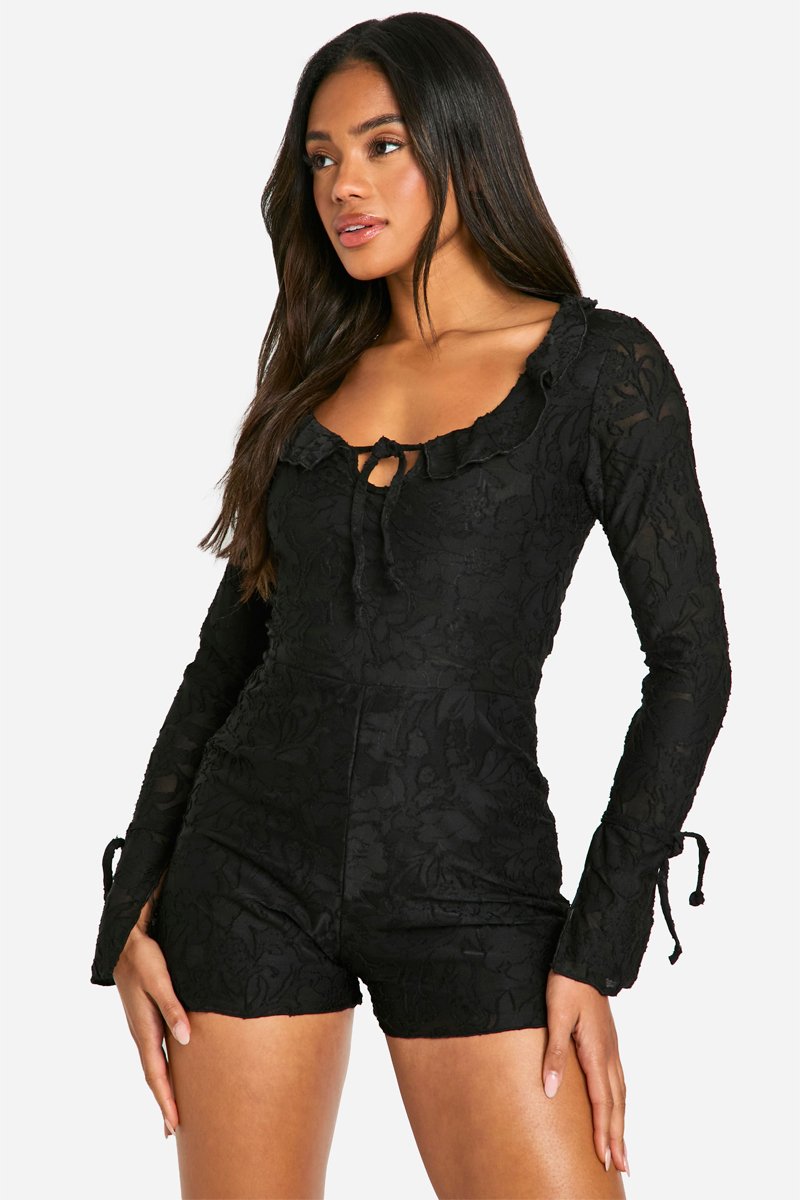 Tuta corta in pizzo - Nero