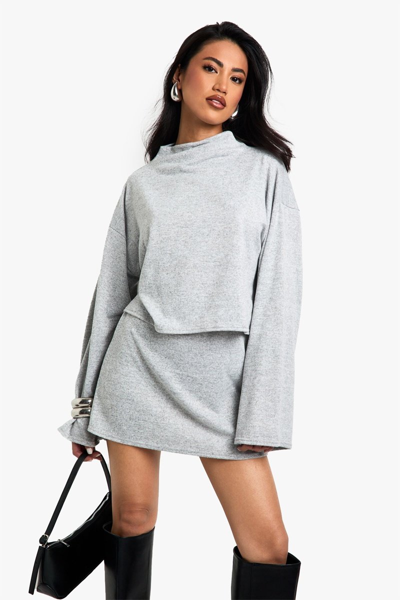 Minigonna a vita alta - Grigio chiaro melange