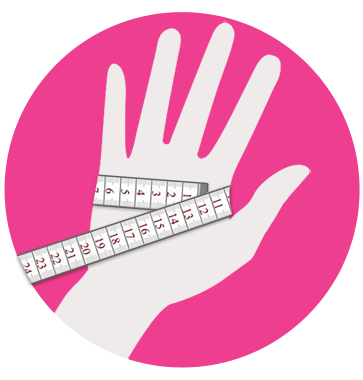 Per conoscere la tua taglia, misura la circonferenza della mano destra se sei destrorso, sinistra se sei mancino.