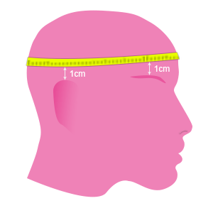 Per capire la taglia di cappelli e berretti, misura la circonferenza della tua testa: posiziona il metro a nastro intonrno alla tua testa all’altezza della fronte, 1 cm sopra sopracciglia e orecchie.